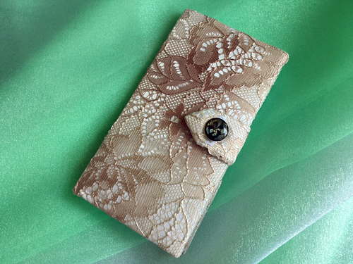メインの生地は、大地の愛をイメージしたピンク寄りの淡い茶系のレース地。