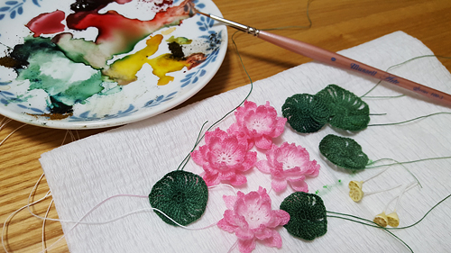 アートフラワー用の染料で着色したところです。